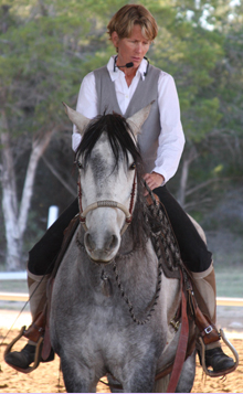 Ginger GaffneyGinger Gaffney teaches from the intersection of natural and classical horsemanship. She has an excellent understanding of balance from her studies in both disciplines. Ginger keeps her horses content and willing to work in balance, using the engagement of the hindquarters to lift the forehand upward. Helping her horses use the ring of musculature that builds, over time, the natural athlete inherent in each and every horse.
